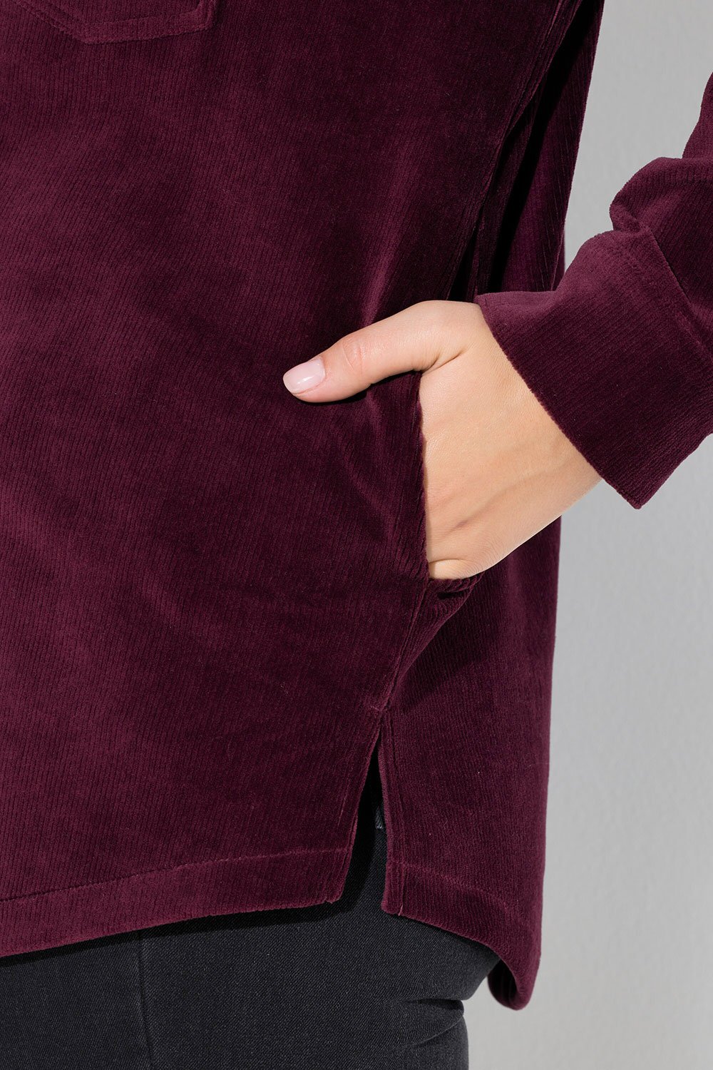 - Ilgos rankovės su užsegamais rankogaliais